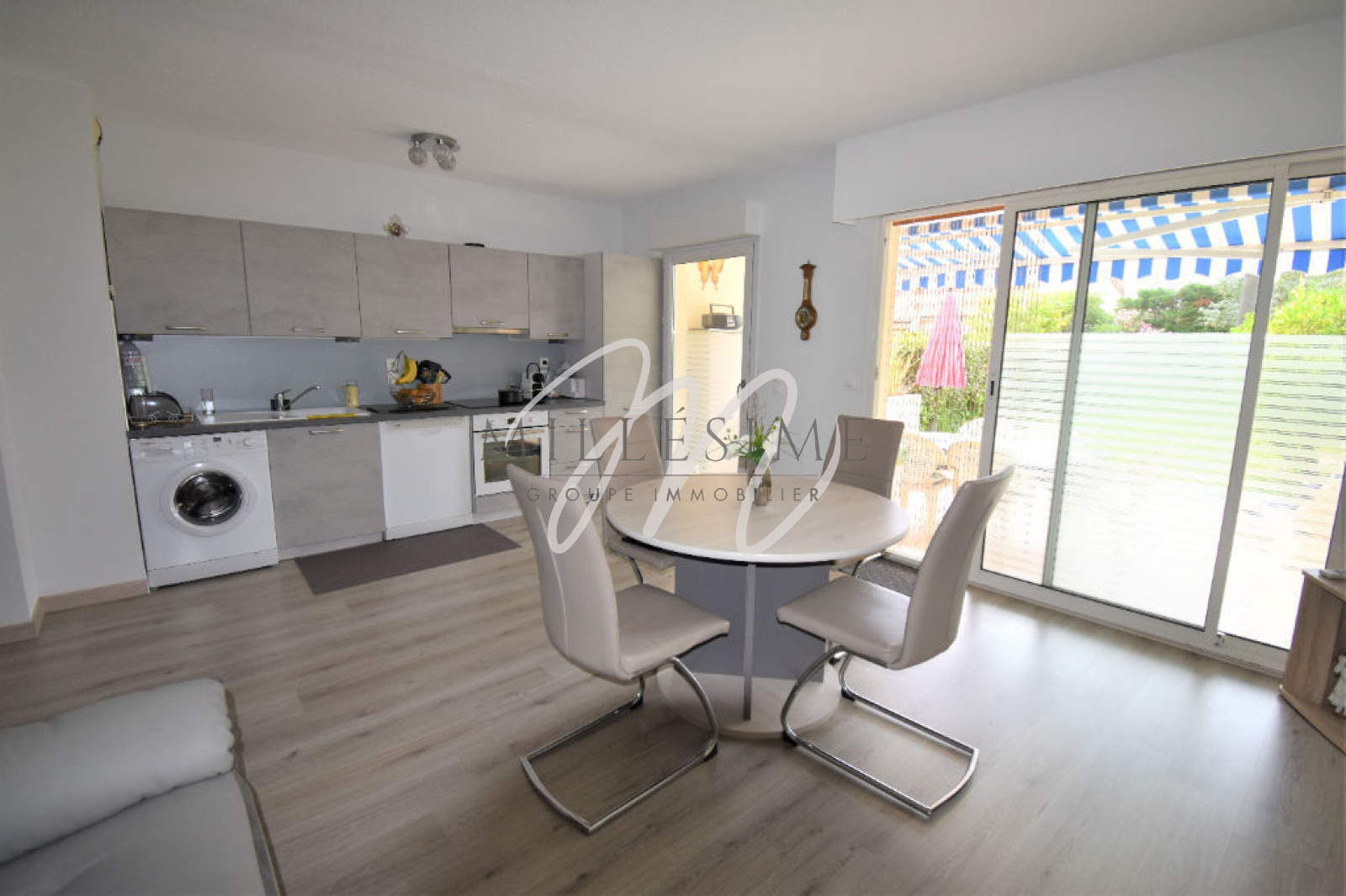 Quartier Boulouris. Situation privilégiée pour ce beau 2 pièces totalement rénové en rez-de-jardin dans petite résidence calme et sécurisée. Il dispose d'une entrée, d'un salon séjour ouvrant sur terrasse et agréable jardinet, d'une cuisine américaine, d'une chambre, d'une salle de bain et d'un WC indépendant. Climatisation, garage et cave viennent compléter ce T2. Etat neuf. Les agences Millésime Immobilier vous propose ce bien à pied de toutes les commodités et de la mer. Rare à la vente ! 20 lots. Ch. 1.360€/an.