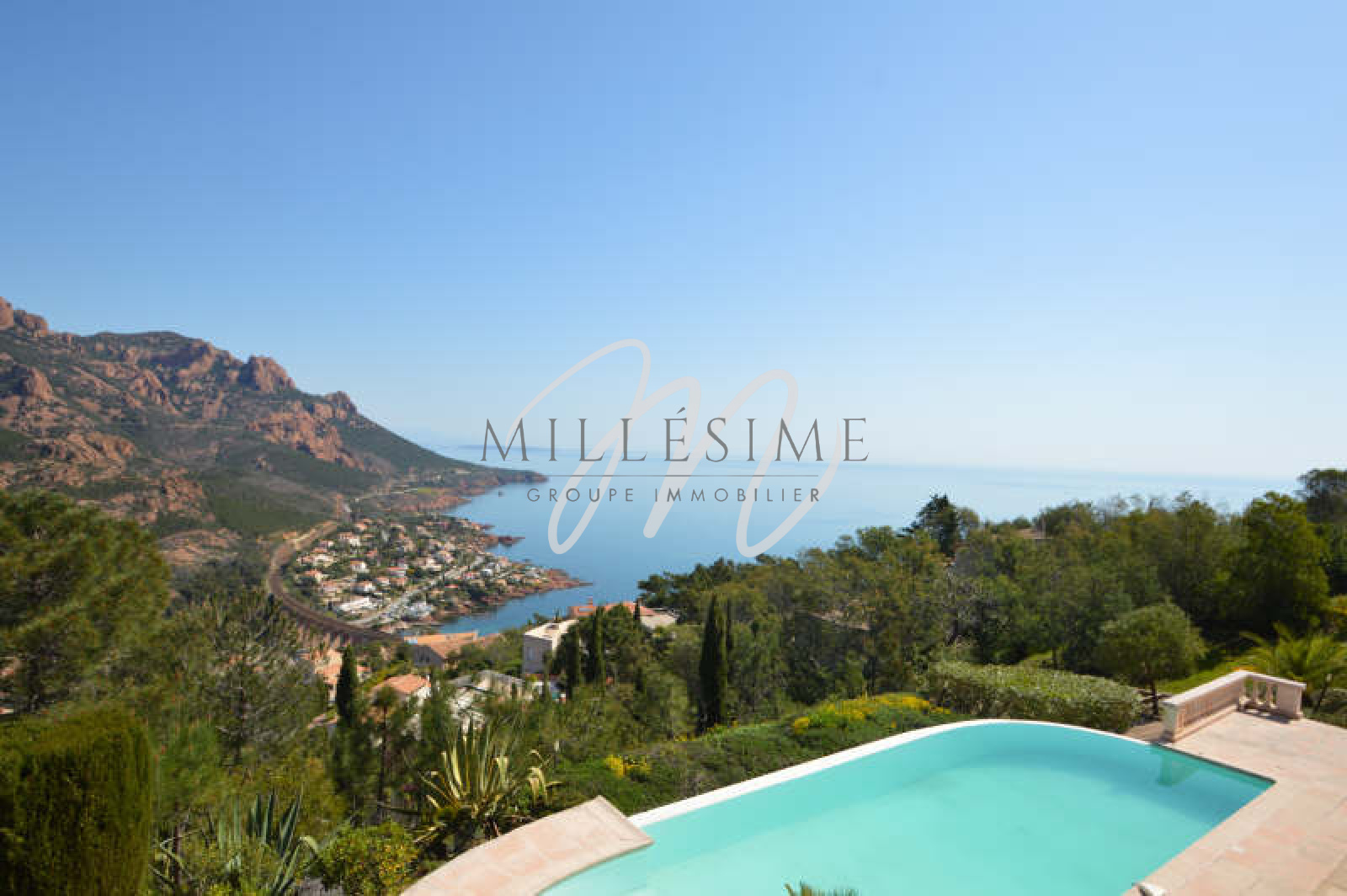 ST RAPHAEL ANTHEOR, Dans un domaine privé et fermé villa divisée en deux habitations à vendre de 11 pièces avec vue mer panoramique. Cette double villa bénéficie d'un jardin de 2000m² , d'une belle piscine avec vue sur les roches rouges , de deux garages et d'une cave.