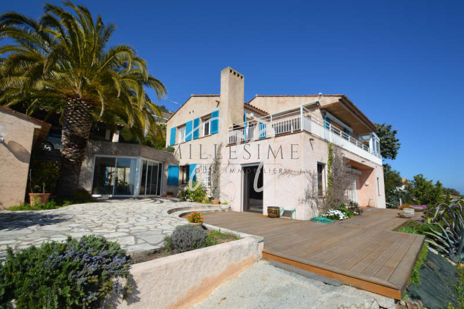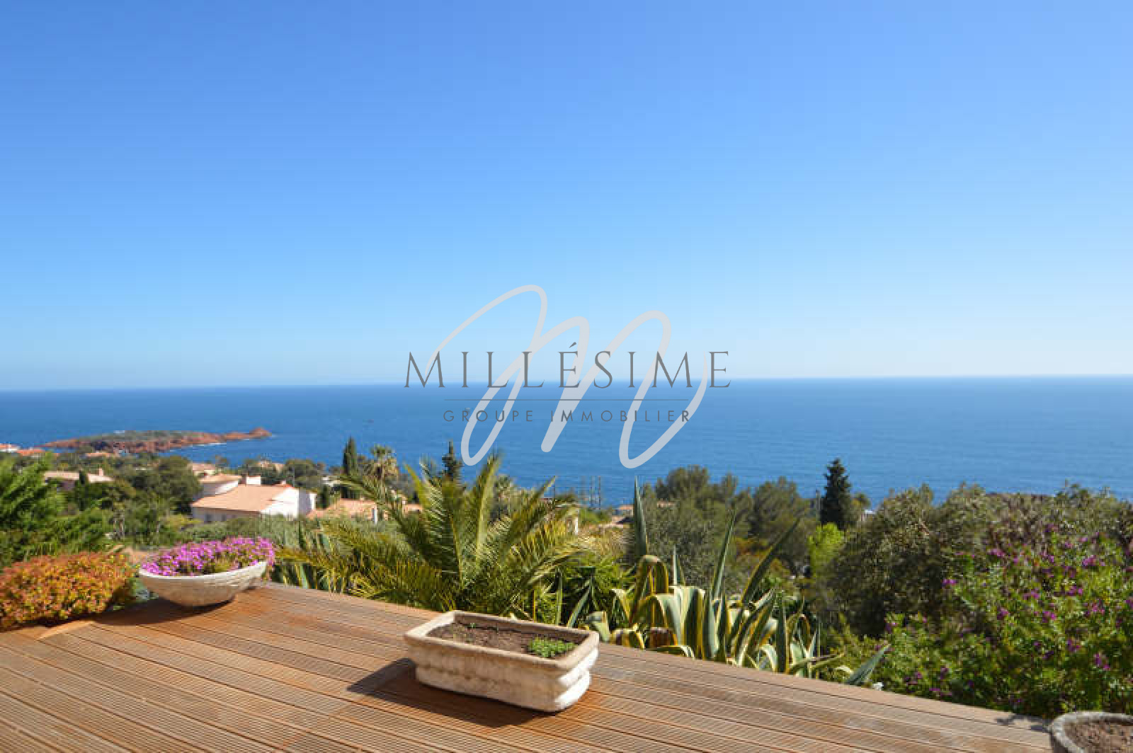 A vendre à Saint-Raphaël / Anthéor, Var, une villa de 5 / 6 pièces et d'une superficie de 160m², construite sur un terrain de 1446m², dans un domaine privé fermé, elle bénéficie d'une exposition Sud et d'une vue Mer panoramique. La maison profite de belles ouvertures sur l'extérieur et donc de beaucoup de luminosité, ainsi que d'un garage et de parkings. Il est possible de construire une piscine avec vue sur la méditérranée. Environnement exceptionnel et coup de coeur assuré.