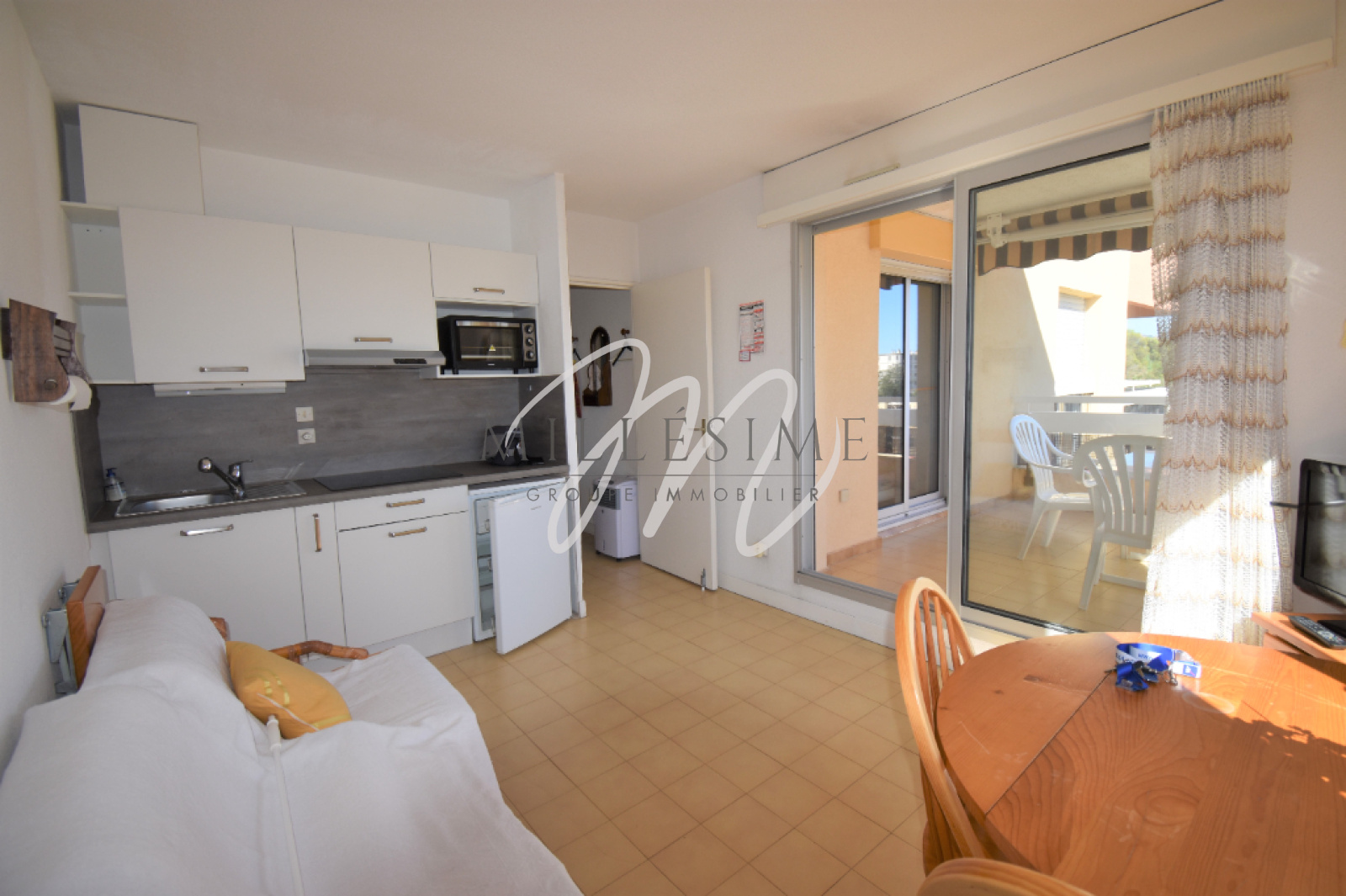 EXCLUSIVITE. Jolie résidence sécurisée au coeur d'un parc paysagé à 200 mètres des plages. Superbe 2/3 pièces en dernier étage exposé plein sud et bénéficiant d'une jolie vue dégagée sur le parc de la résidence. Celui-ci se compose d'une entrée, d'une cuisine américaine équipée, d'un salon, d'une chambre principale, d'une salle d'eau, d'une cabine pouvant recevoir deux lits supplémentaires. Une belle terrasse complète l'ensemble. Vous trouverez également un parking privé. Coup de coeur assuré. Honoraires charge vendeur