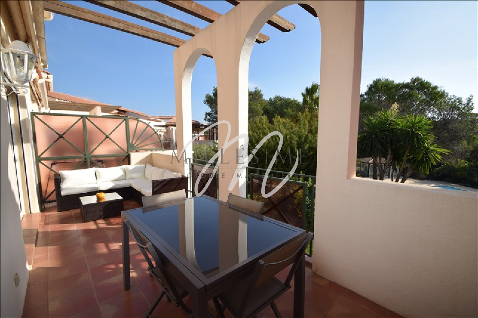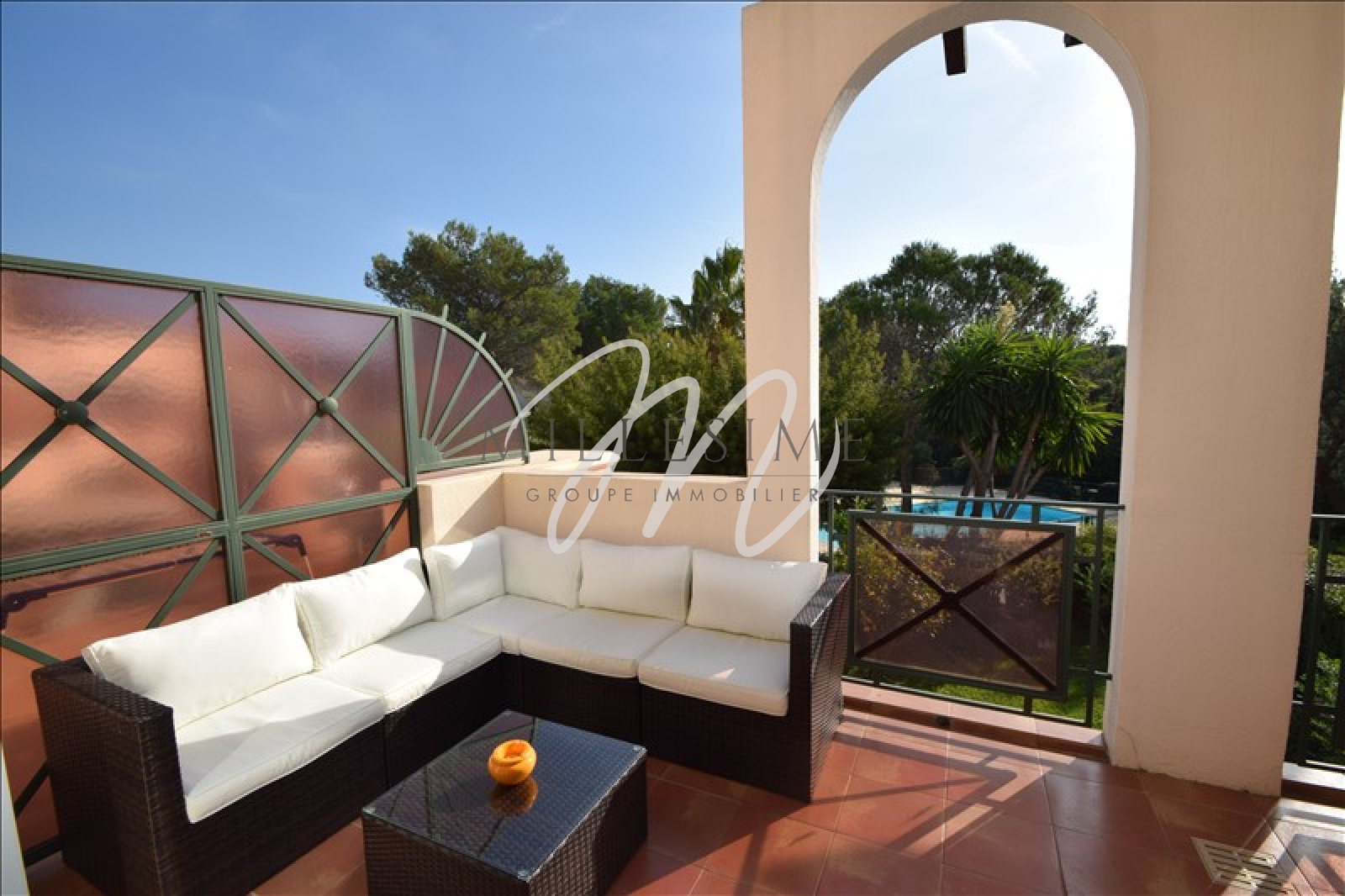 ST RAPHAEL BOULOURIS. 100 Mètres de la plage. Résidence de standing avec parc, piscine et tennis. Vue dégagée plein sud. Beau 3 pièces traversant sur grande terrasse ensoleillée. Excellent état. Parking privé. Garage en sus. Tout confort et proche commerces. Honoraires d'agence à la charge du vendeur