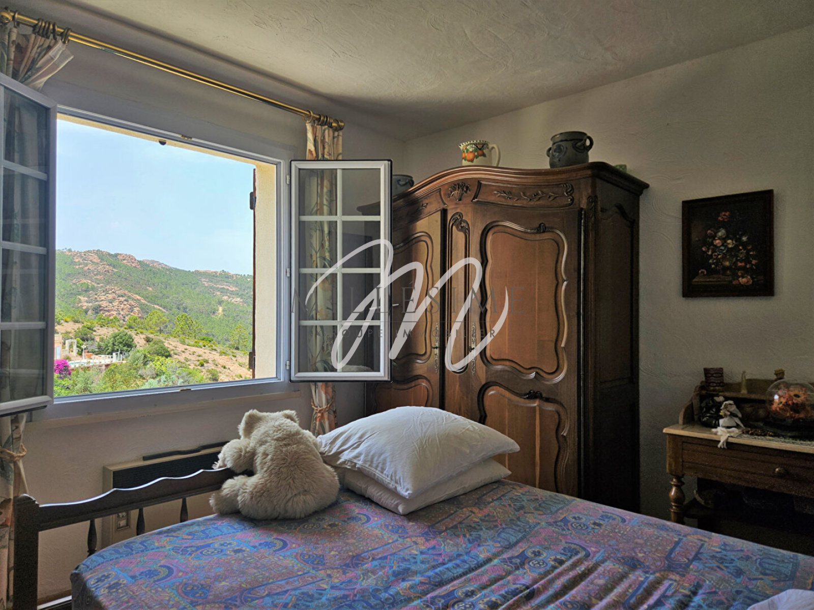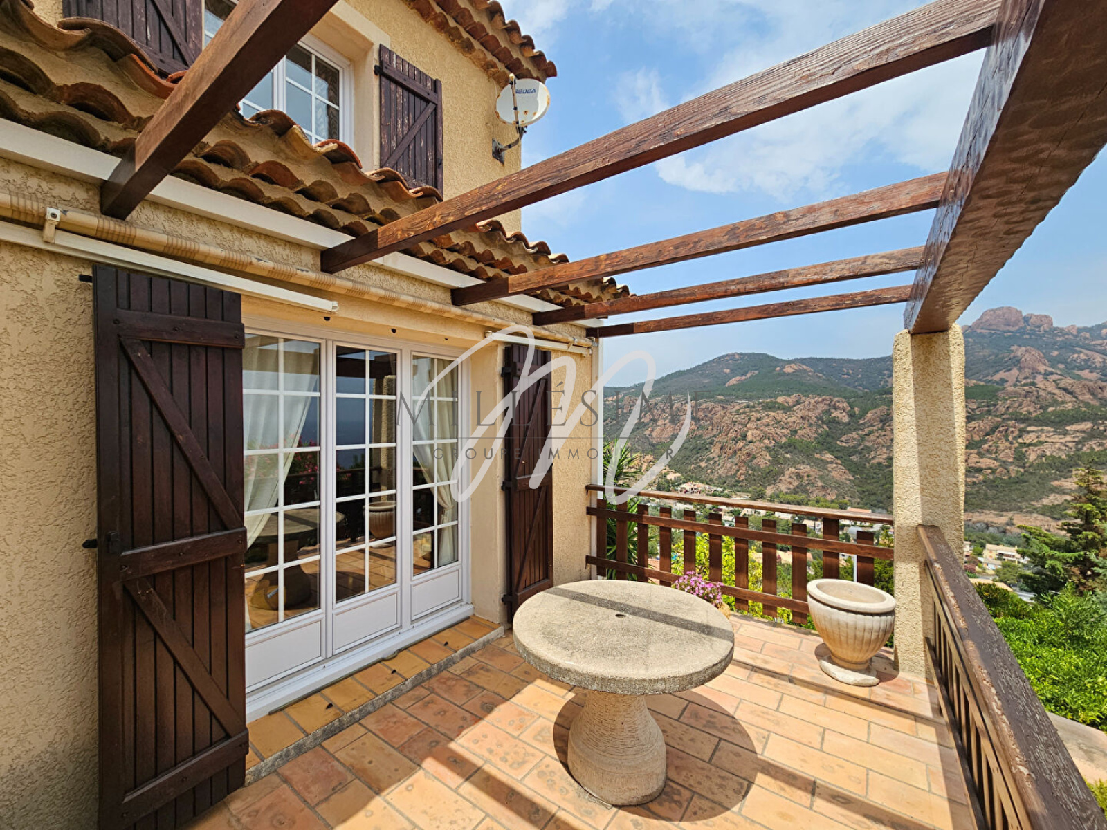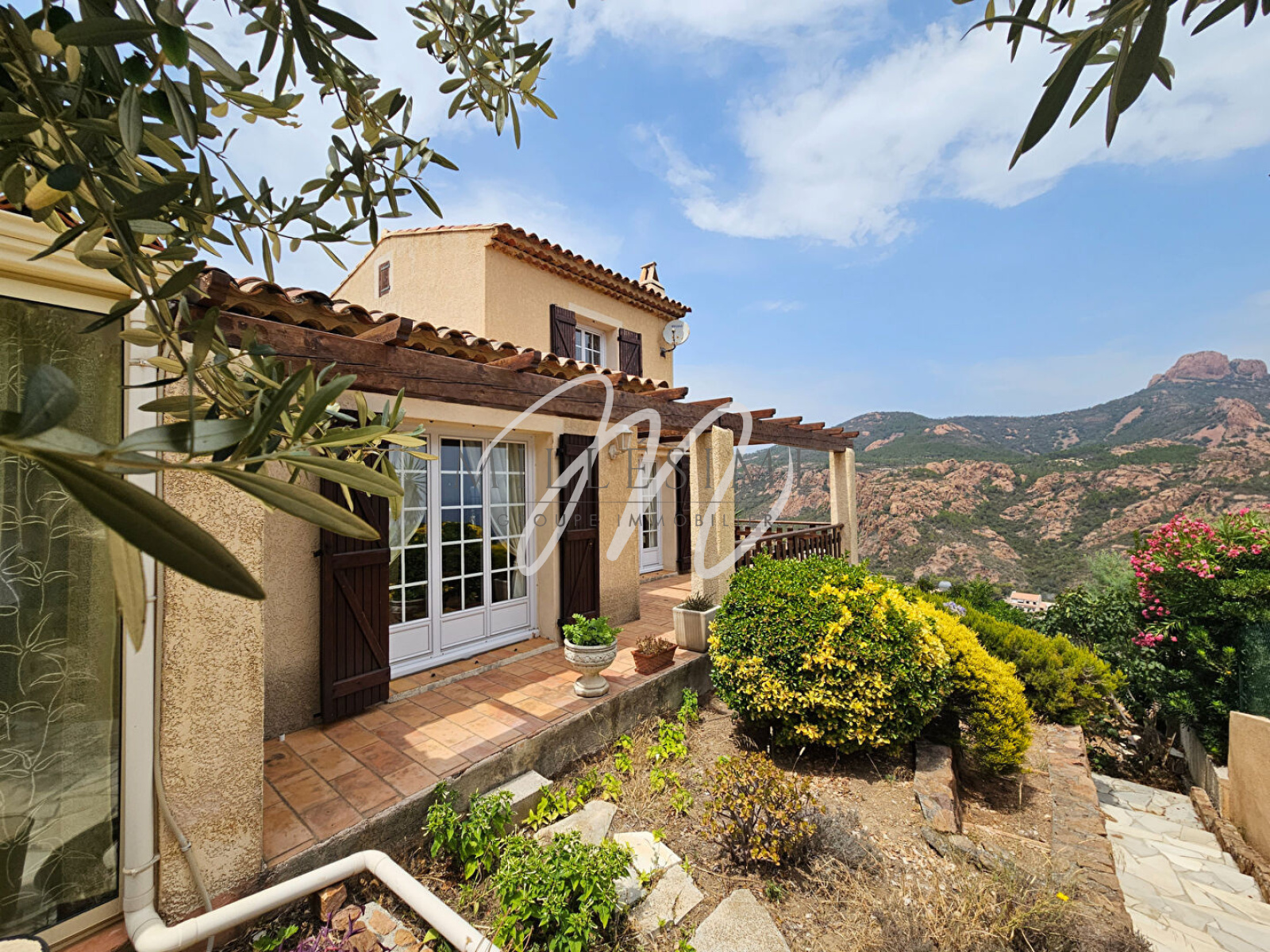 SOUS COMPROMIS- EXCLUSIVITE. Nichée à mi-hauteur de la colline d'Anthéor cette charmante villa provençale dispose d'une vue sur la mer et le massif du Cap Roux. Implantée sur une parcelle de 678m², avec jardin aménagé en restanques et complanté, la maison est dotée d'une surface totale de 133m² annexes compris, ainsi que d'un car port pour 2 voitures. Au niveau principal se trouve le séjour avec cheminée et la salle à manger prolongés tous deux par une terrasse, une cuisine indépendante donnant sur véranda, un WC, une chambre avec petite salle d'eau attenante ainsi qu'une seconde véranda. Le niveau supérieur se compose d'une chambre avec placard et d'une salle de bains attenante. Le sous sol de la maison est aménagé en buanderie et cave et profite d'un grand espace de rangement sain